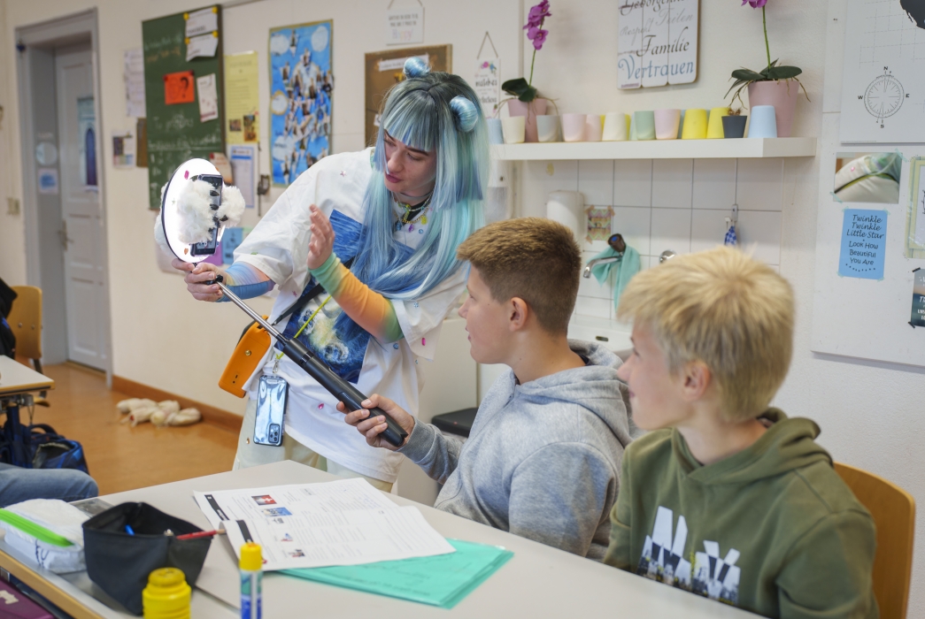 «Die junge Frau mit den blauen Haaren filmt und kommentiert ihre Aktion – und sie bittet Schüler, sie zu filmen. Diesem Wunsch kommen die Heranwachsenden gerne nach. Mona fasziniert.» – Susanne Holz, Luzerner Zeitung
