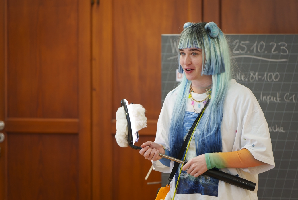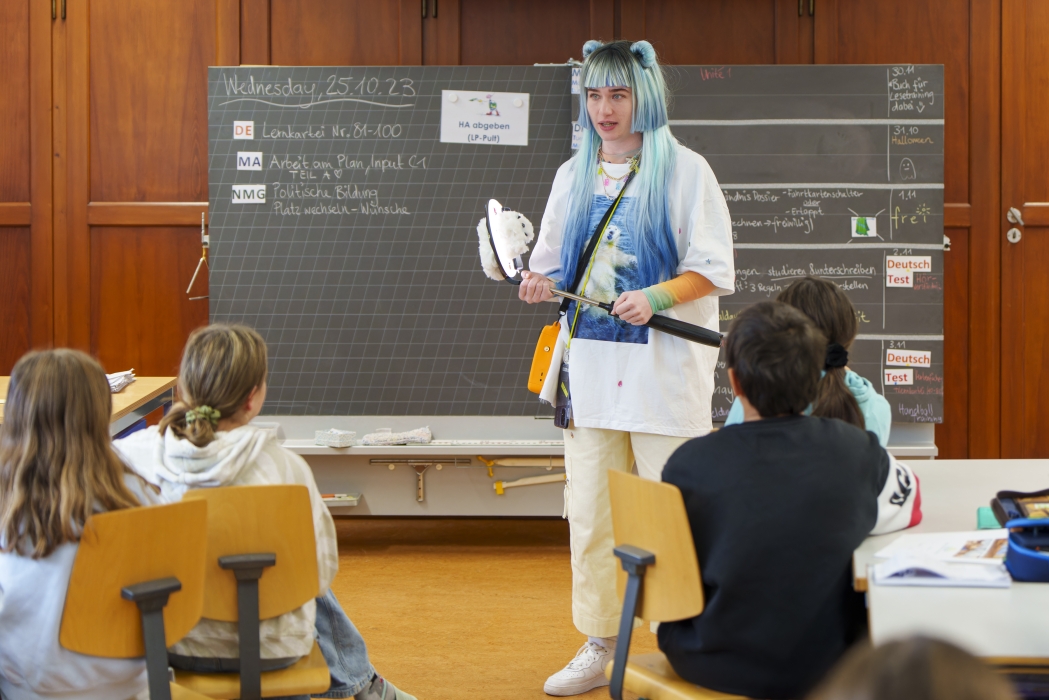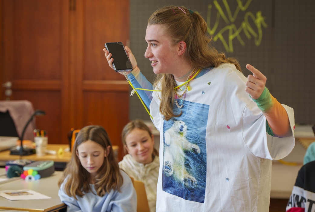 Eva Rottmann bringt mit ihrem Monolog «Die Eisbärin» brennende Themen ins Schulzimmer: Social Media, Mobbing und die Frage nach der eigenen Identität. Das Klassenzimmerstück ist empfohlen für Kinder ab zehn Jahren und richtet sich damit an ein junges Publikum, bevor dieses die ersten Schritte mit eigenem Handy in der Social-Media-Welt unternimmt. Hannah Nagel ist seit 2021 Regieassistentin am Luzerner Theater und feiert mit «Die Eisbärin» ihr Regiedebut.