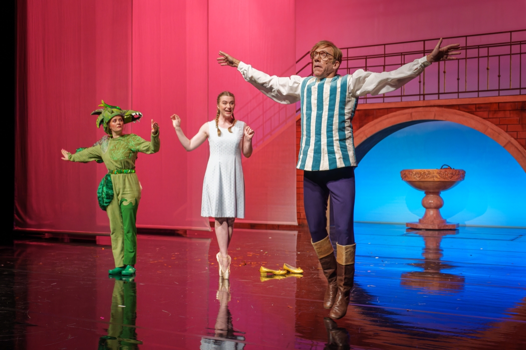 In der aktuellen Bühnenfassung werden die Kinder im Familienstück in eine Fantasiewelt eingeladen – mit allem, was ein echtes Märchen braucht: mit einer Prinzessin, einem Prinzen, einem Drachen, einem Schloss, vielen Abenteuern und am Ende einem Kuss.