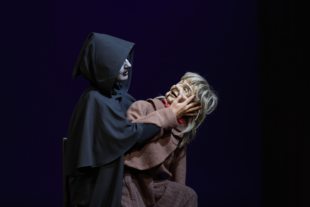 Eine geheimnisvolle Sage aus dem Onsernone-Tal (TI) erzählt von einer alten Hutmacherin, die dem Tod ein Schnippchen schlägt und ihn im Fluss gefangen hält. Auf einmal stirbt niemand mehr und die Welt gerät aus den Fugen. Mit diversen Spielformen (von Schauspiel über Handpuppen hin zu einer lebensgrossen Klappmaulpuppe) und einer guten Dosis Humor untersucht die Inszenierung das Wechselspiel von Leben und Tod.